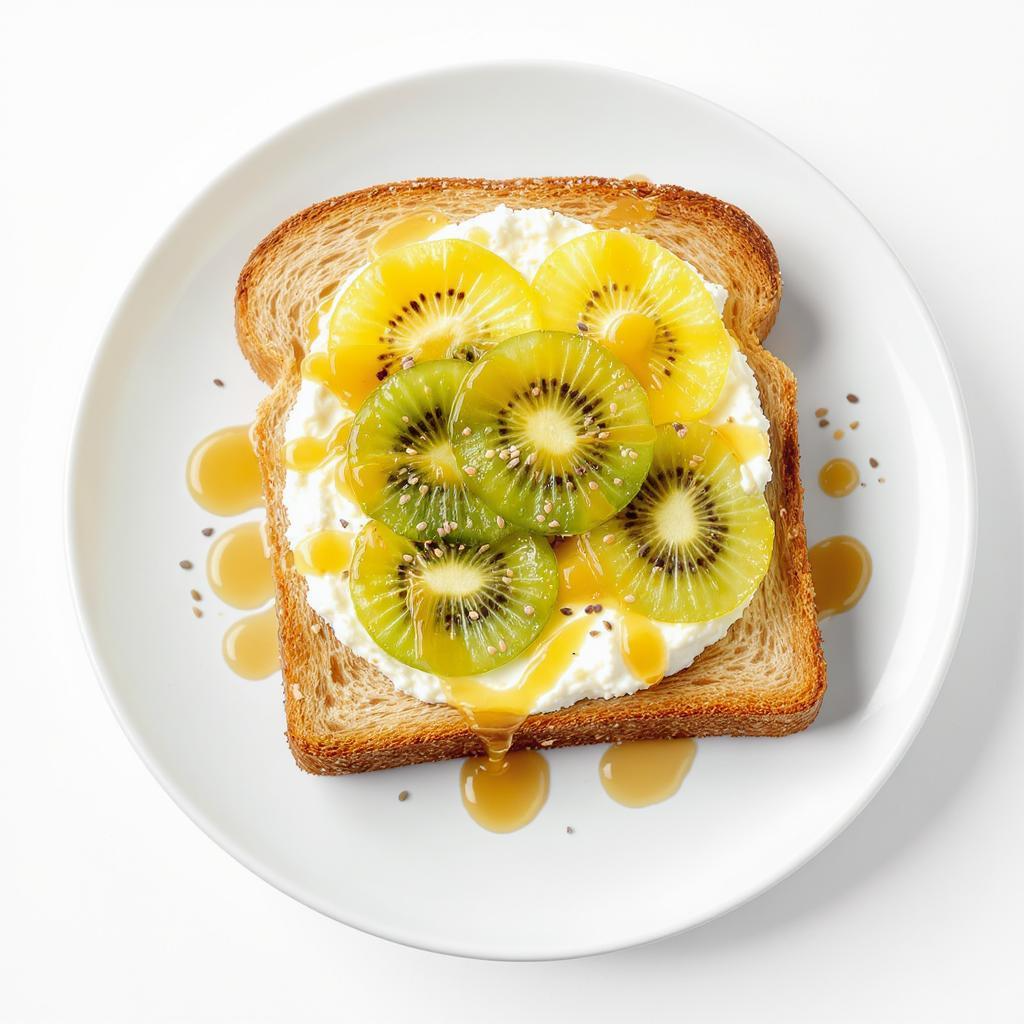 Toast with Kiwi, Ricotta and Honey Kikokà 16 de June de 2025 Ingredients (serves 1): 1 slice of whole grain bread 2 tablespoons of ricotta 1 yellow Kikokà kiwi, sliced 1 teaspoon