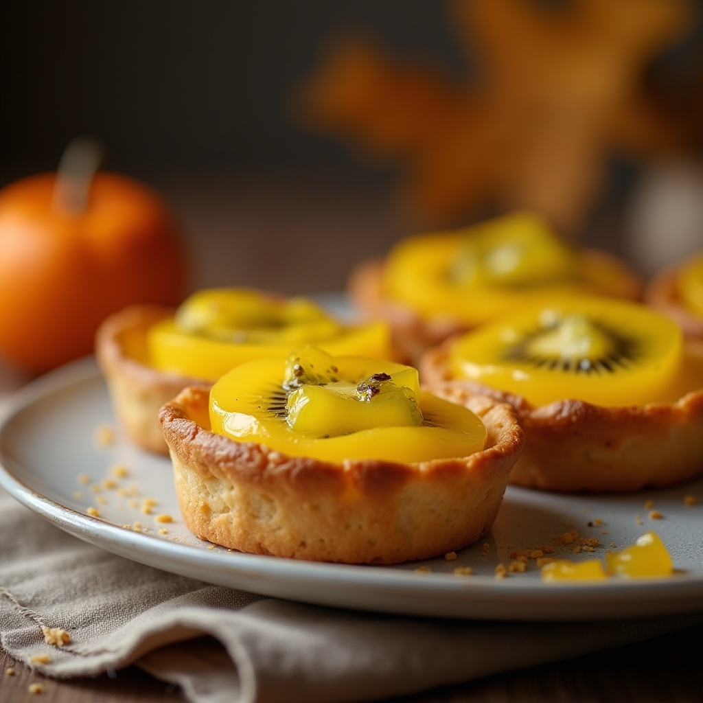 Mini Kiwi Tartlets Kikokà 16 de June de 2025 Ingredients (makes 4 tartlets): 1 sheet of puff pastry 1 yellow Kikokà kiwi, peeled and thinly sliced 4 teaspoons cream